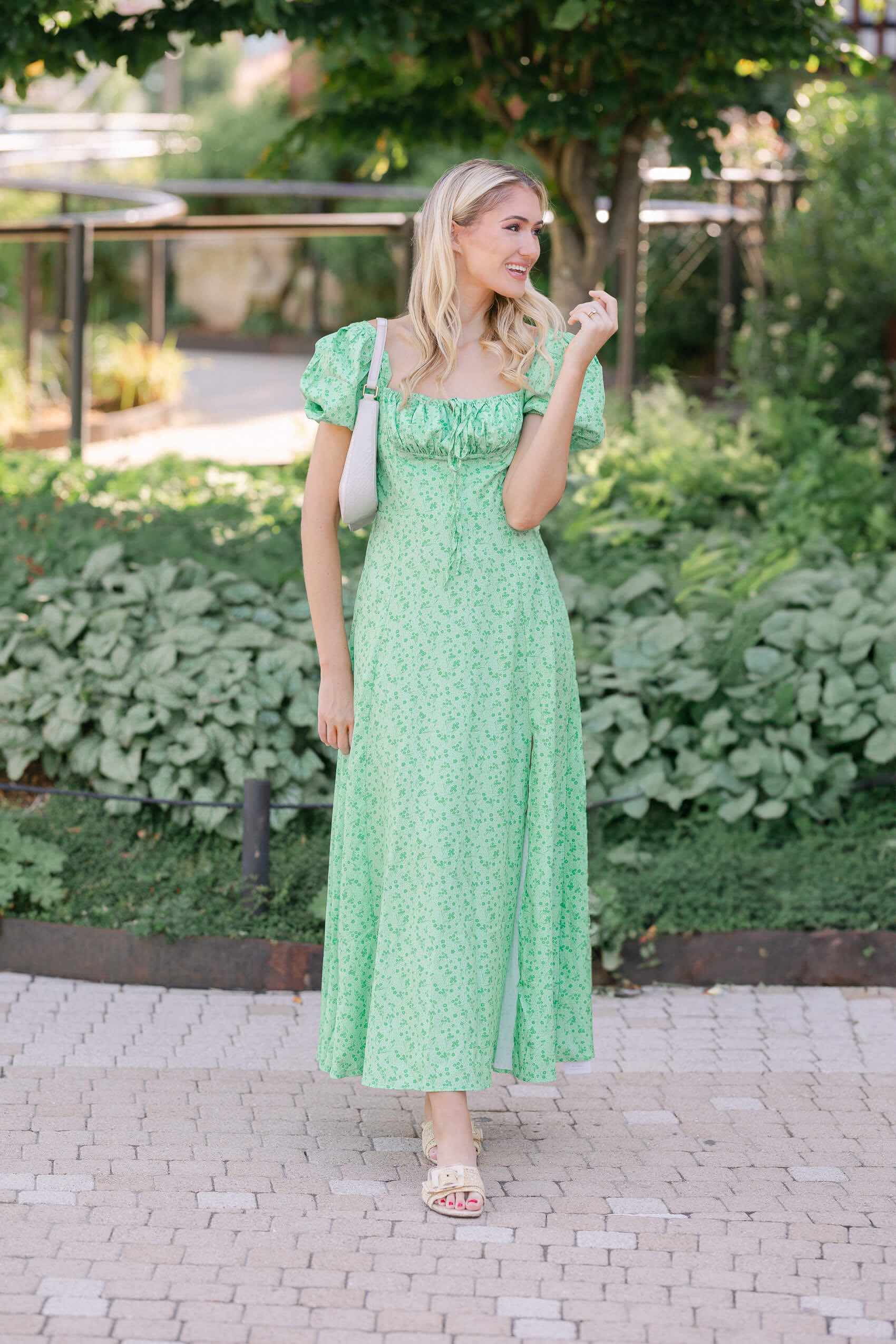 At #4, the popular Tallulah Midi Dress is what summer dress dreams are made of. With puff sleeves and feminine corsetry boning, this midi dress is equal parts sweet and stylish, but it comes with a hefty $209 price tag. If you love this feminine design but can’t afford to spend $209, I can personally vouch for this $46 Amazon alternative. I own this stunning dress in several colors (including the green featured above!) and can confirm it’s truly the perfect dupe.