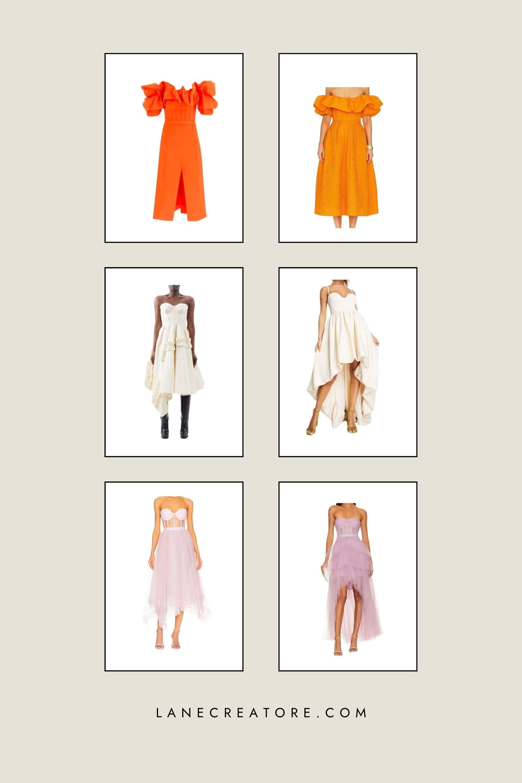 At #8 and a signature McQueen designer, the Bustier Midi Dress in orange is a bold, vibrant piece. This style combines a fit-and-flare skirt with a ruffle, bustier top for a gorgeous, feminine look. To get the same look without spending $3,202, check out the $695 Rebecca Vallance Aurora Midi Dress in Marigold.