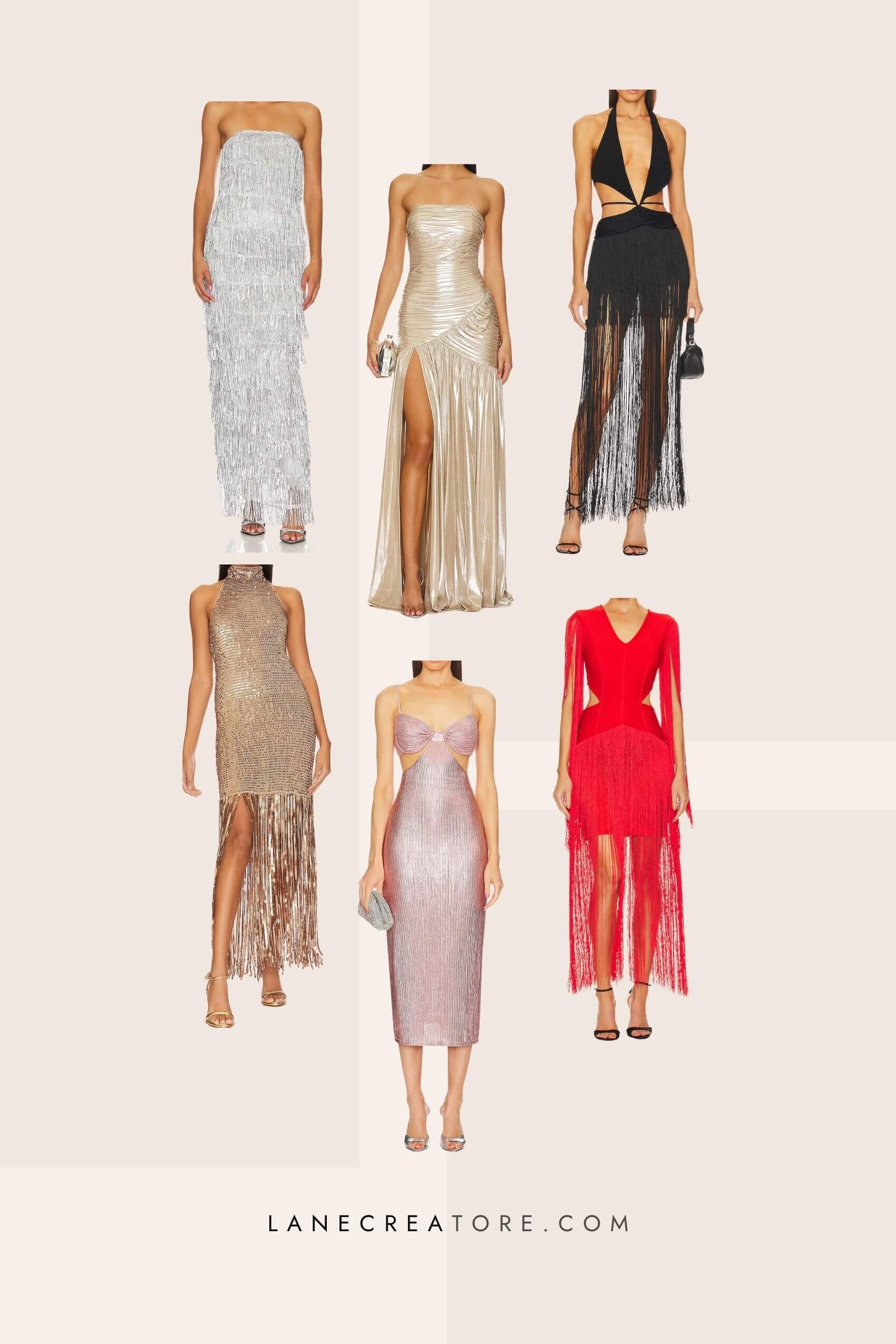 First up, the Hervé Léger Cut-Out Fringe Dress combines the brand’s signature bandage look with bold cut-outs, a halter neck, and fringe. This gorgeous, fabulous gown is one of my favorite Herve Leger dresses, so I was thrilled to discover the Michael Costello Silva Dress on Revolve. This Hervé Léger dress dupe looks like a designer original but retails for less than $250.