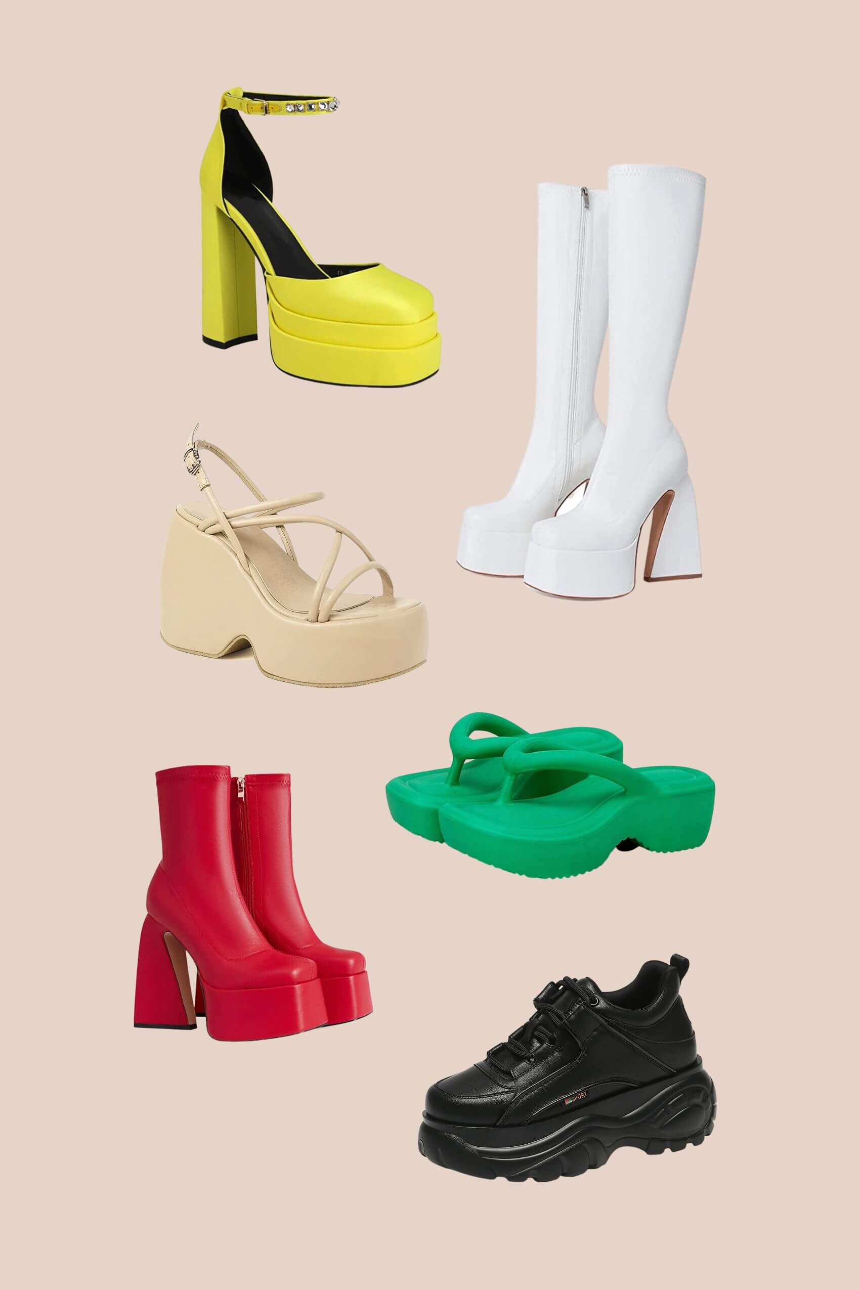 Whether you’re eyeing a pair of unique boots or platform heels, I’ll help you find a style you love. Click any row below to jump to a section: